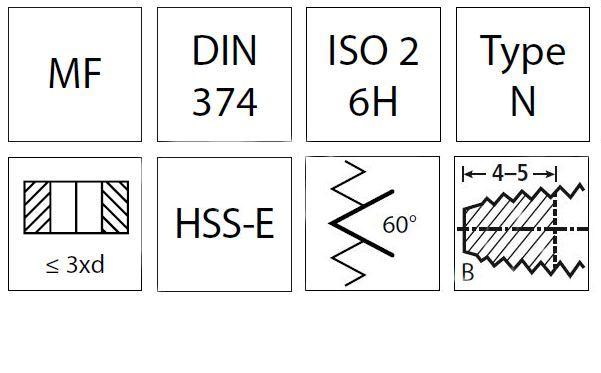 Застосування: Універсальні мітчики із широким діапазоном дрібного метричного різьблення за DIN 13.