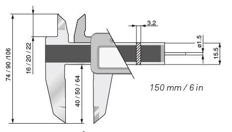 Діапазон вимірювання: 0-150 мм (остальні діапазони вимірювання в таблиці нижче)